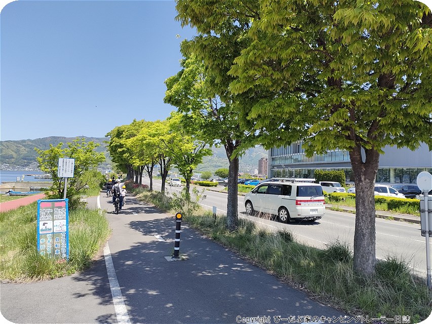 どうやら『諏訪湖サイクリングロード』という諏訪湖を一周するサイクリング&ジョギング専用道路が今年の3月下旬に1周全区間が繋り、4月から供用開始されたそうで。