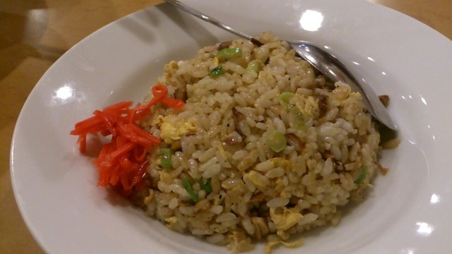 ただ、子供が少しだけ残した天津飯と、後から来た連れが注文したセットの塩ラーメンとご飯と焼き餃子1個を食べたので、結果的には量的にも満足しました。