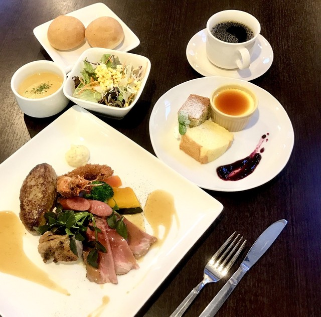 (日)11:20 先客一组已预约两个桌子? SB汉堡套餐1680日元(含税) SB是斯蒂尔布兰的缩写。 首先是沙拉和汤。 主菜有汉堡、鸡排、烤牛肉、虾炸、香肠,种类繁多。 顺便点了...查看详情