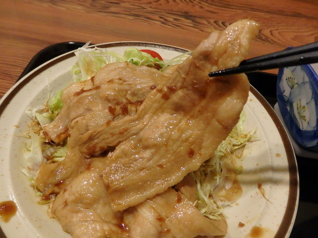 清里駅前の食堂でカツ定食1300円