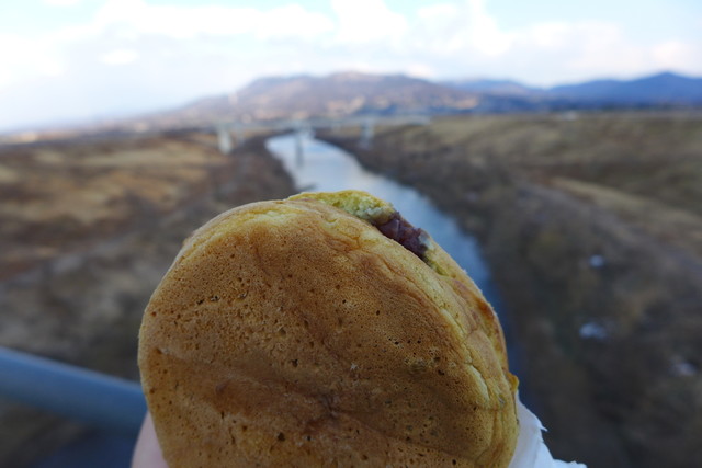 磐井焼はいわゆる大判焼き(二重焼き)。この地域では大判焼きをそう呼ぶのか、同店が「磐井焼」と名付けて販売しているのかどうかは不明。