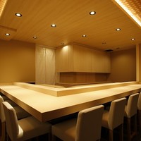 カウンターは10席ほど、白木のカウンターが印象的な落ち着いた空間です。個室も2部屋あるそうなので会食利用もOK。