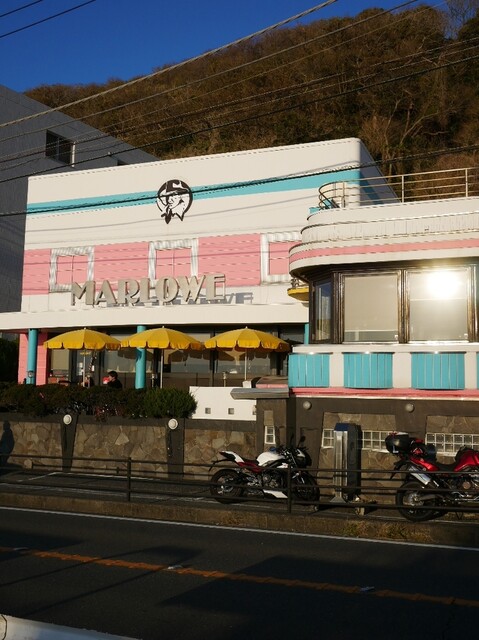 鎌倉まで出掛けた帰り、逗葉新道から横横に乗って帰ろうとした瞬間に「あ、マーロウに寄ろう!」って思ってUターンかまして走ること30分…本店到着です。写真を見たわけでもないですが、期待通りの黄色い店舗に嬉しくなってしまいました。
