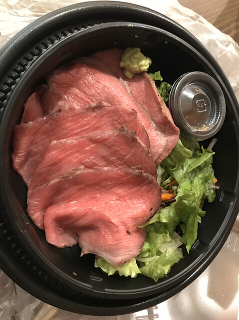 ビュッフェスタイルのお店。すかいらーく系列の様子。ディナータイムにはローストビーフの食べ放題があるとかなんとか。そんな食べ放題のローストビーフを使った、ローストビーフボウルとやらが、税込500円でテイクアウト商品として販売されているではないですか。