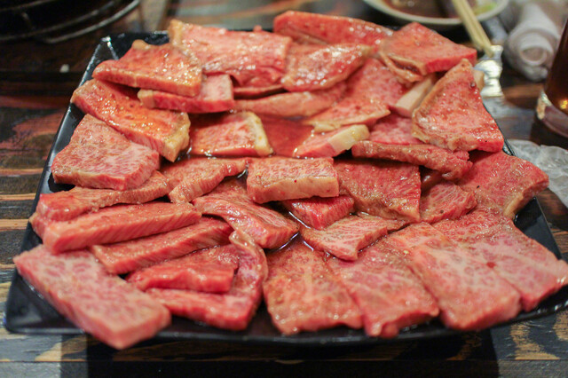 고급스러운 흑모 와규 A4~A5 등급의 고기를 합리적인 가격에 즐길 수 있는 저희 가게입니다. 한 마리 통째로 구매하기 때문에 가능한 가격 설정입니다! 특히 추천하는 메뉴는 특선 로스입니다♪ 연회에 적합한 코스와 무제한 음료도 준비되어 있습니다. 아늑하고 편안한 분위기의 매장에는 테이블 좌석이 있어 다양한 상황에서 이용하실 수 있습니다. 결제는 현금만 가능...합니다. 또한, 온라인 예약이 만석일 경우에도 전화로 예약이 가능할 수 있습니다. 언제든지 편하게 문의해 주세요◎