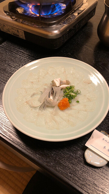 というフグの身を様々なお料理にして提供していただけます。火入れの加減が抜群に良く、フグの良さを最大限に引き出しています。