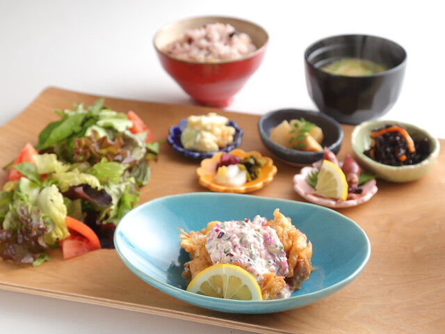 注文したのは、彩り豊かで目にも楽しいランチプレート。一つ一つの料理が丁寧に作られており、まるで「新おばんざい」のよう。品数...