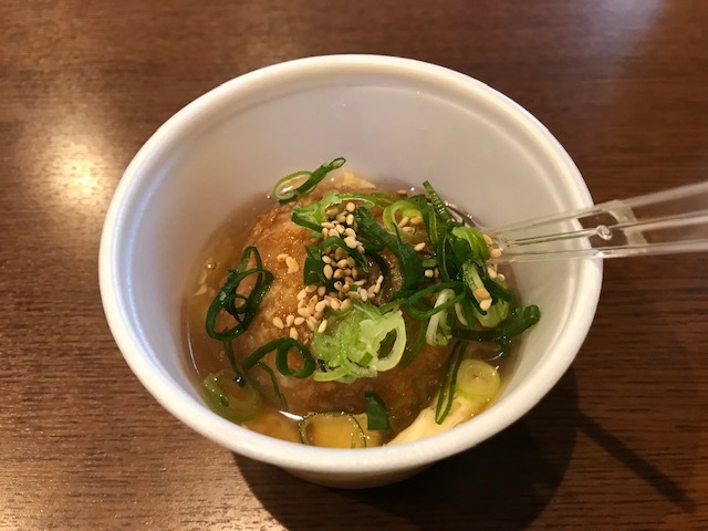 おでんの厚揚げ200円、手羽先300円、大根350円、あんこう唐揚げ850円を注文。