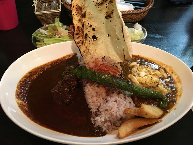 京都市左京区北白川の某有名コッテリラーメン屋さんの近くにある。外観は喫茶店の様で分かりづらかったが何とか到着。中に入るとインド一色の雰囲気に圧巻。ご夫妻でされていてお薦めを聞いたところせっかくならダブ...