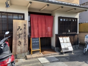 京都では日常のおかずのことを、「おばんざい」と言います。「ばん」とは、普段のという意味があり、各々の家庭に受け継がれた日々のおかずを表現しています。みずきでは、家庭的な温かさを大切にしながら、旬菜をふんだんに取り入れて、一味違う料理に仕上げています。また魚も天然魚にこだわり、体にも心にも優しい一品です。また、阪急松尾駅近くの風光明媚な立地にある町屋風の店内は、杉をふんだんに使用した落ち着いた雰囲気...の佇まいです。ゆったりと流れるジャズをバックに、ご家族やお友達、またはお一人でも、お酒やお料理をお楽しみ頂けます。