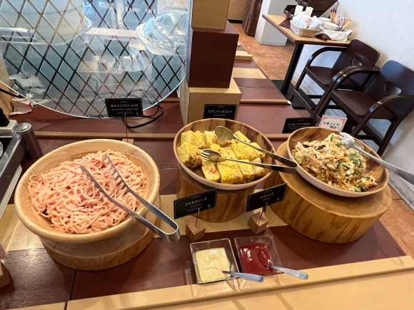 内容はホテルの朝食ビュッフェみたいで、朝食定番のシリアルとかが無いけどランチ用の他の物がある感じかな?
