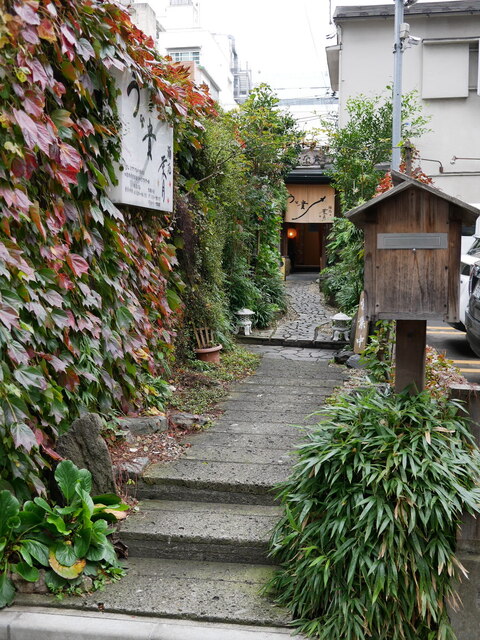 店の入口までの細い道