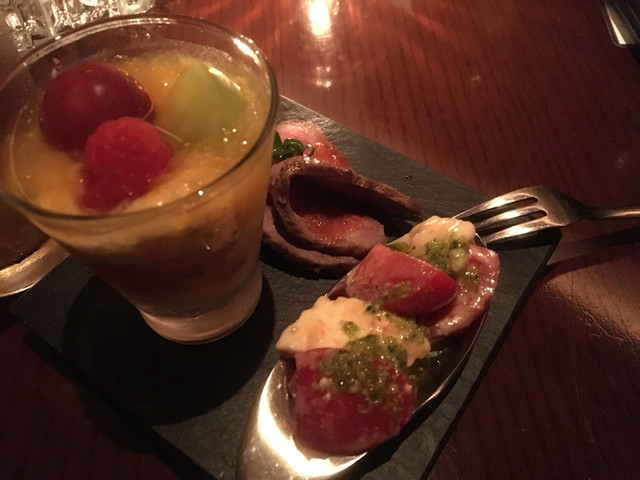 初めての訪問。店構えから気になり入店。おーいい感じのBARですね。おしゃれ空間。早速カウンターに通され1番奥の席へ。奥のカウンターってどこのお店でも個人的に好きです。既に結構飲んでいたのですが、外の蒸...