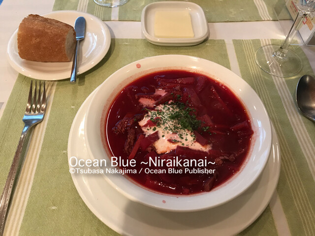 ランチは特製ビーフハンバーグやポークソテー、ボルシチなど5種類から選べます。