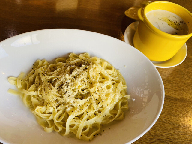 パスタは、パルメザンクリームソースを選択。生パスタのもっちり感…またもやソースを掛ける前に、半分程そのままで食べちゃいましたσ(^_^;)