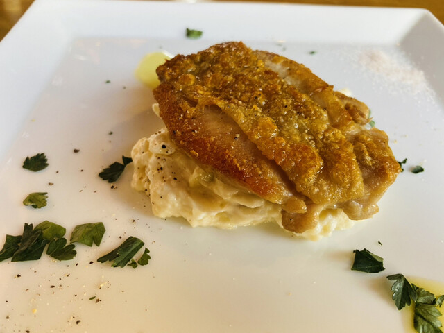 若鶏もも肉のパリパリ焼き…皮がじっくり焼かれ、ほんとにパリパリ♡良い塩加減です。美味しい❤️