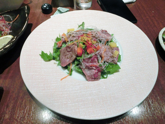 特筆すべきは、春雨の様な食材が海ぶどうを彷彿させる歯応えと、柔らかな牛肉と食感が素晴らしい。