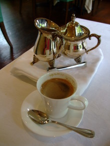 スープ、前菜、バゲット、肉、デザート、コーヒー