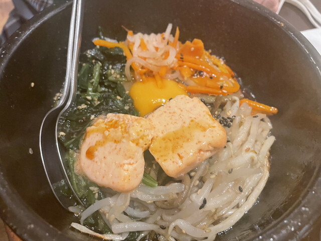 久々の来訪となる。ピビンバが食べたくなったら迷わずここ!今回は"ガツンとニンニクピビンバ"と"ハーフ冷麺"を追加、またピビンバにはナムル大盛をトッピングした。連れは"スンドゥブチゲ"を。やはり美味しいピビンバ!今回はナムル以外のトッピングは避けて、ニンニク風味を存分に味わうことにした。コチュジャンタレが辛くて美味しいのでピビンバが最高に美味しい!野菜がたっぷりなので身体にも良さそう。またハーフ冷麺...