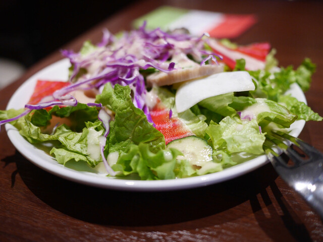 以前に比べるとサラダとかオリーブオイルとか付かなくなりましたが、それでも他店に比べると圧倒的な良コスパ。