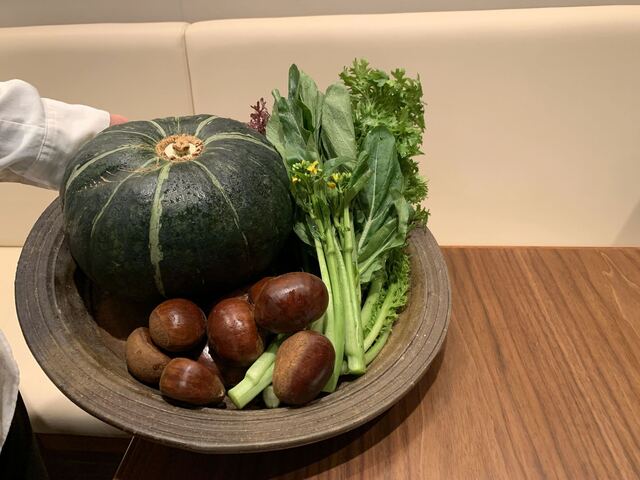 店に入った最初に今日使われる野菜と一緒に見せてくれた「利平栗」がこのモンブランに使われているようで、ここで繋がって来た。