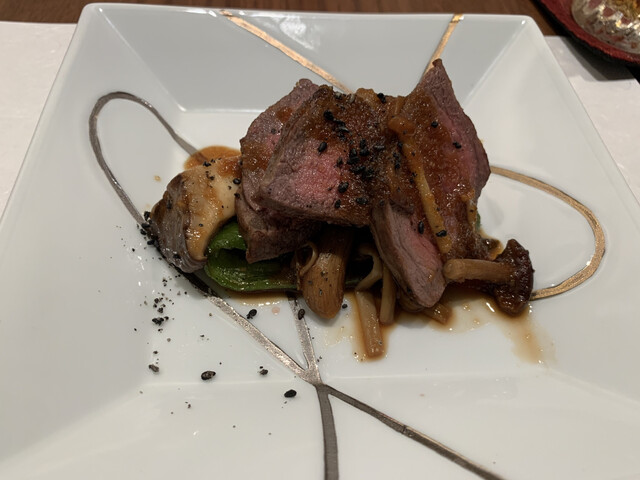 「尾崎牛、万願寺唐辛子、キノコ」…結構、このあたりでお腹がいっぱい。半分残してしまったのでお土産にさせてもらった。味付けはやや濃厚、ガツンと来る。