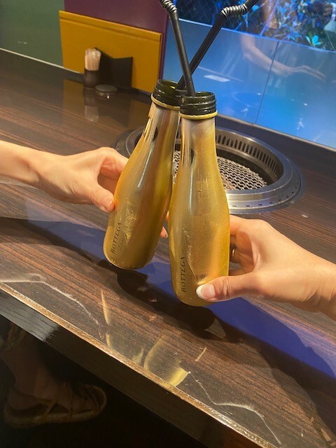 可愛いBottegaのボトルで乾杯。