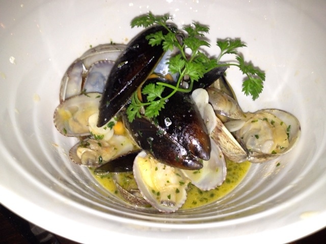 色々生野菜のヤネウラサラダ(580円 たっぷりのサラダで、クルトンや生ハムものっている。ドレッシングも悪くない)、娘にチーズの盛り合わせを特別にお願いした。ゴルゴンゾーラやマスカルポーネなど5種類程度盛られて、バゲットと生ハムも付いている。続いて門崎丑ステーキ 柚子風味のシャリアビンソース(1280円 鉄板で供され柚子風味のシャリアビンソースを目の前でかけられる。門崎丑は赤身が旨いのだが、かなりサシが入っていてちょっと若者向きだった。出来れば、炭火焼にしてくれた方がありがたかったが、美味しい牛肉であることは確か。このクオリティで1280円はある意味あり得ない価格だ)、あさりとムール貝の香草白ワイン蒸し(680円 これも旨いしたっぷり。スープが旨く、バゲット200円を漬けて食べたり、ご飯200円にかけて食べても旨い)、チーズのピッツア(780円 電気だが、石釜もあるとのことでオーダーした。ナポリ風でもローマ風でもないが、このピッツア生地も旨い。ゴルゴンゾーラもたっぷりで、かなり大きいし、これで780円と言うのもある意味あり得ない価格)、みなかなり旨かったし、シェフが実は和食出身と聞いて、オニカサゴ カブトの煮付け(680円)もオーダーしてみた。これがまたボリュームたっぷりで、ご飯に合うしっかり目の味付け。これにご飯200円でも充分すぎる満足度だ。メニューも味付けもセンスにあふれ、無国籍料理のカテゴリーでは日本有数のクオリティ、CPの高さだと思う。