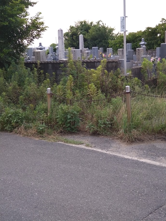 「ここからは歩きですな。お墓がありましたやろ。あのまえの細い道を入っていく。しばらく行ったら右手にまた細い道がでてきますんや。けものみちみたいな、えっ、こんなとこ人間行けるんかいな、みたいな。そこ、入って行ったら直ぐですわ」