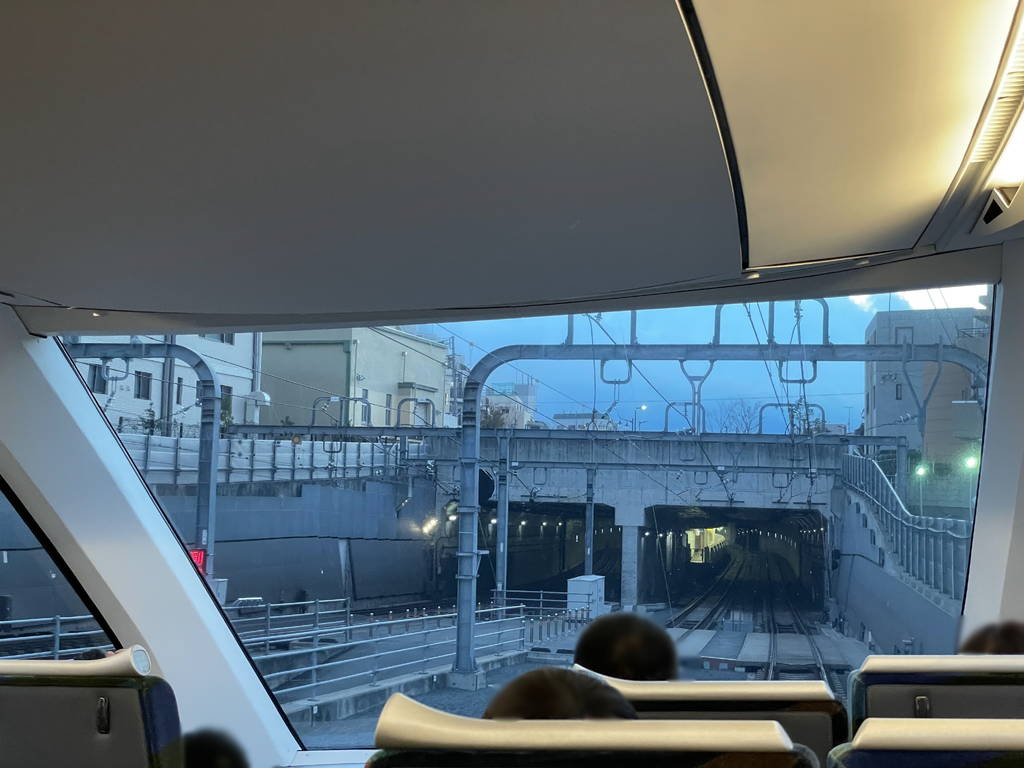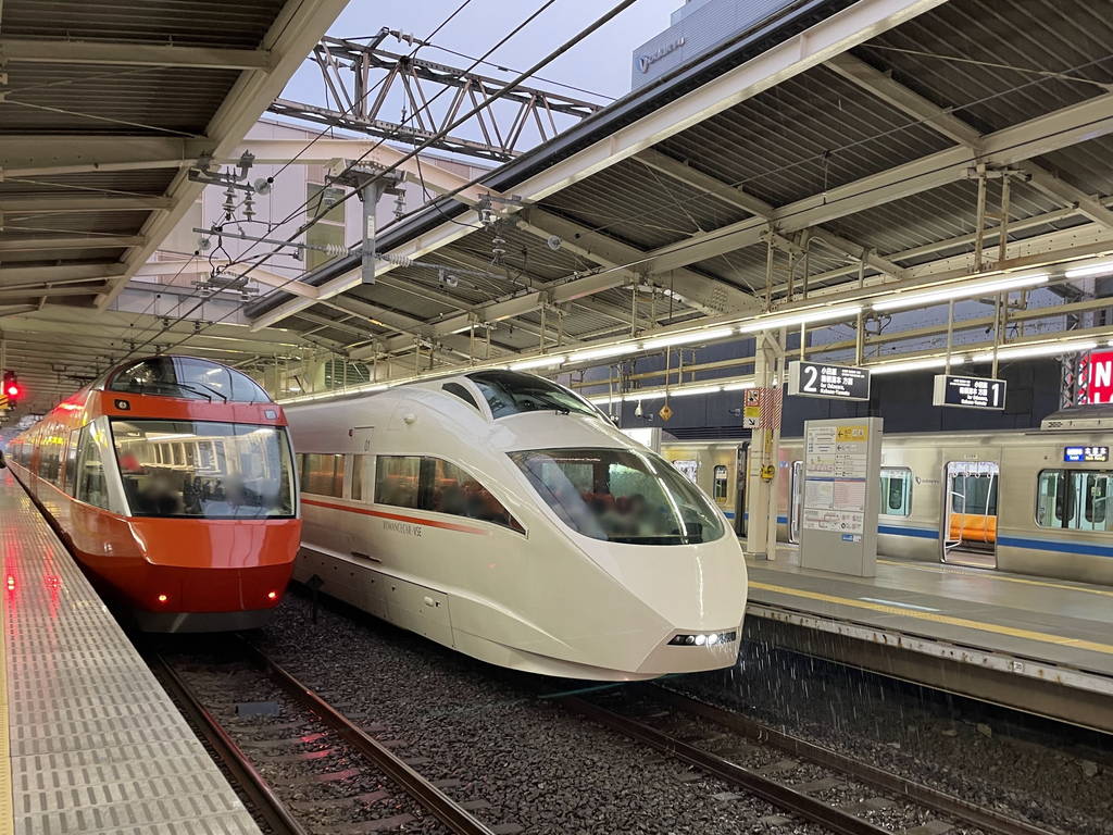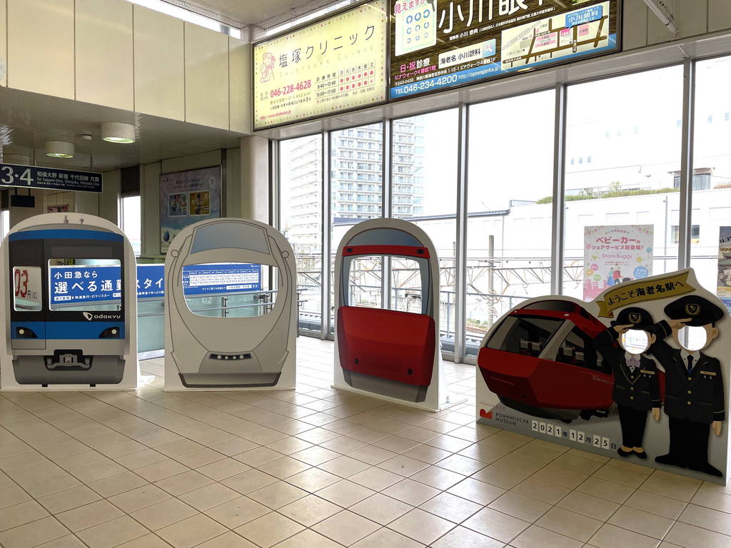 受付してエスカレーターを降りるとはじめに小田急線最初の車両が見えてきます。
