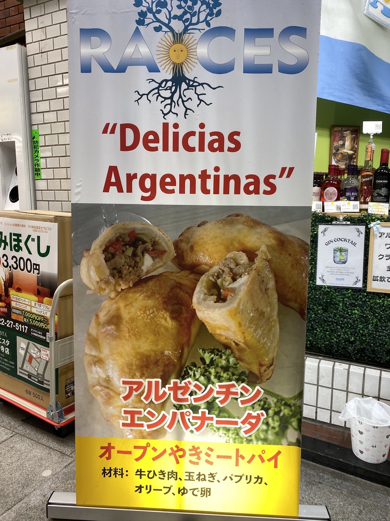 お店の外観を撮るのを忘れてしまったのだけど、アルゼンチン国旗を掲げた屋台風のお店ができていた。上の写真の通りミートパイをメインで売っているお店らしい。材料まで示してくれて大変に親切である。そしてその内容がおいしそうでしかない。迷うことなく購入した。