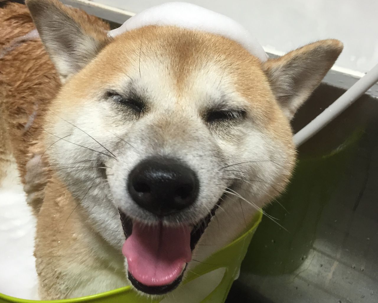 毎回恒例のホイップアロマバスも頭に泡を乗せても微動だにせず