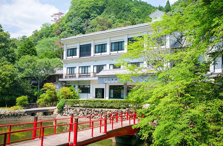 夢前の豊かな自然に恵まれた山中に佇む「上山(うえやま)旅館」。創業は明治7年。300年の歴史をもつ奥播磨の天然温泉「塩田温泉」の湯元として、150年続く由緒ある老舗旅館です。