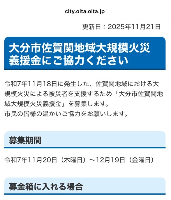 今朝さっき寄付、喜捨ともいうしここに載せて日記にしています。ご了承くださいませ。大分佐賀関の大規模火災義援金にわずかですが協力しました。昨日やっと鎮火したとテレビ📺報道で聞きました。