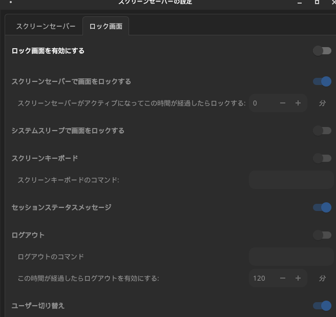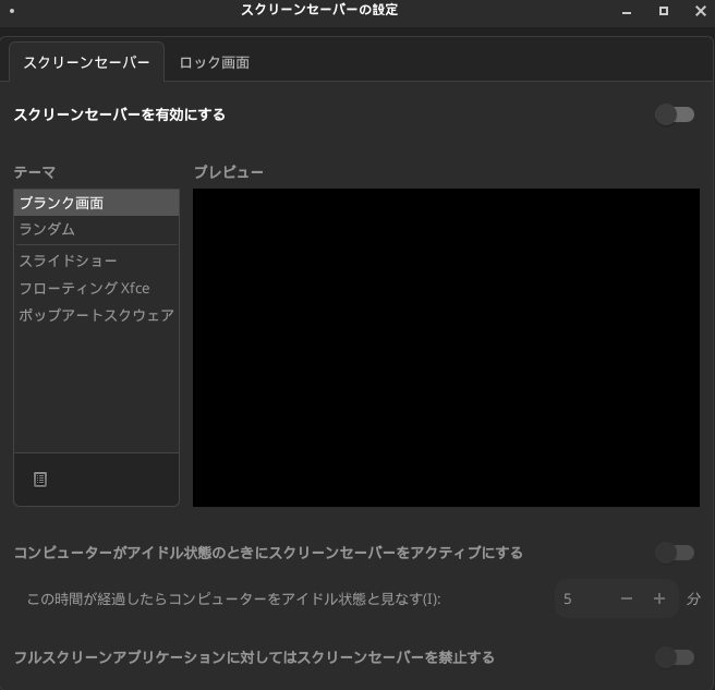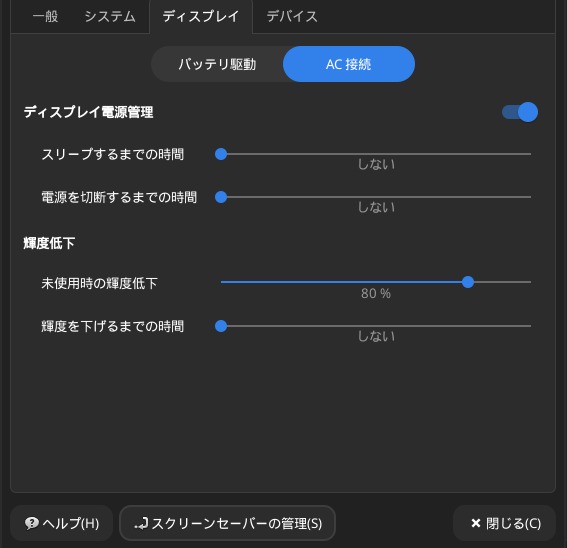(念の為に)アイドルの時スクリーンセーバーをアクティブにするをOffにして