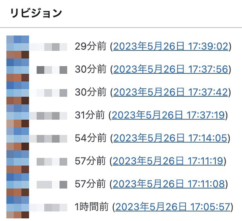 個人運営のブログはもちろん、複数人で運営するメディアでも、いつ誰が何を編集したかを記録しておくことは重要です。ミスの確認や編集、リライト、復元を行う際に便利だからですね。