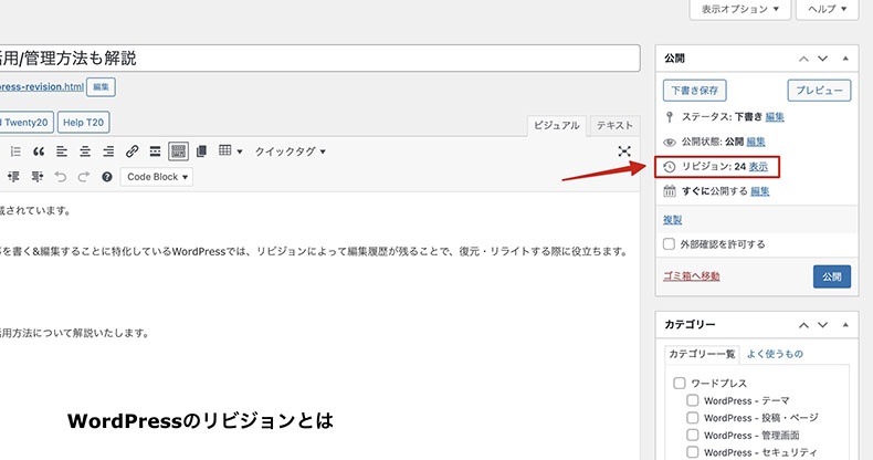 WordPressには、「リビジョン」という機能が搭載されています。