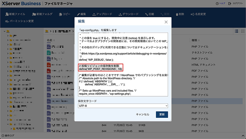 エックスサーバーのファイルマネージャで追記した例