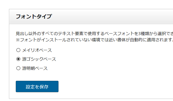サイト全体のテキストに使用するフォントタイプとフォントサイズを変更できる機能