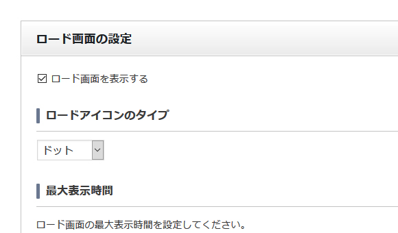 ページを遷移する時に表示されるロード画面のタイプと表示時間を柔軟に設定