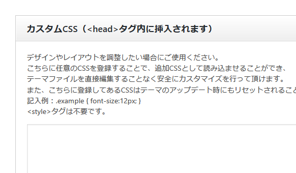 任意のCSSを記入することでテーマのデザインをカスタマイズできる機能