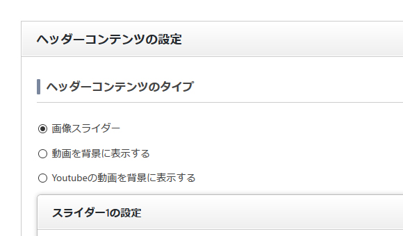- ヘッダーにMP4、Youtube、画像スライドの埋め込みが可能