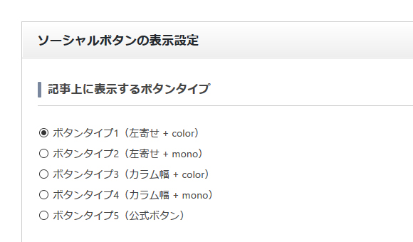 記事詳細ページ上下に表示するソーシャルボタンの表示/非表示やボタンデザインをお好みで設定できる機能