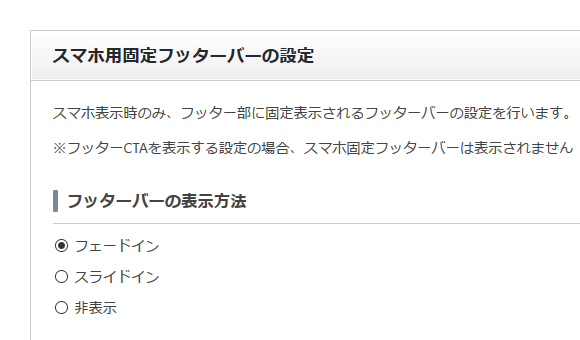 スマホ表示時のみフッター部に任意のアイコン付きボタンを表示できる固定フッターバーを表示可能
