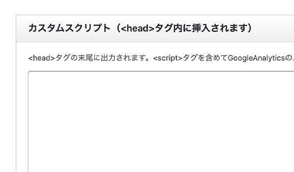 head内に挿入したい任意のコード(Googleアナリティクス等)を管理画面から挿入できる機能