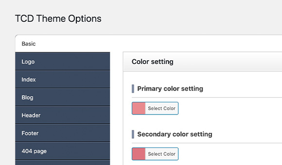 テーマオプションとは、WordPressの管理画面から簡単にカスタマイズが行えるテーマ特有の機能のことです。TCDではコンセプトに基づいたテーマのラインナップが揃っており、各テーマごとに最適なテーマオプション機能を搭載しております。ホームページとして機能するまでの初期設定がとても簡単です。