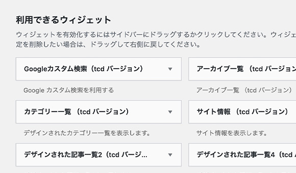 サイドバーをはじめとしたウィジェットエリアにTCDオリジナルウィジェットを表示することが可能