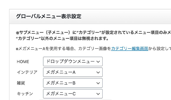 情報量が多くても視覚的に分かりやすいドロップダウンメニュー(メガメニュー)を表示