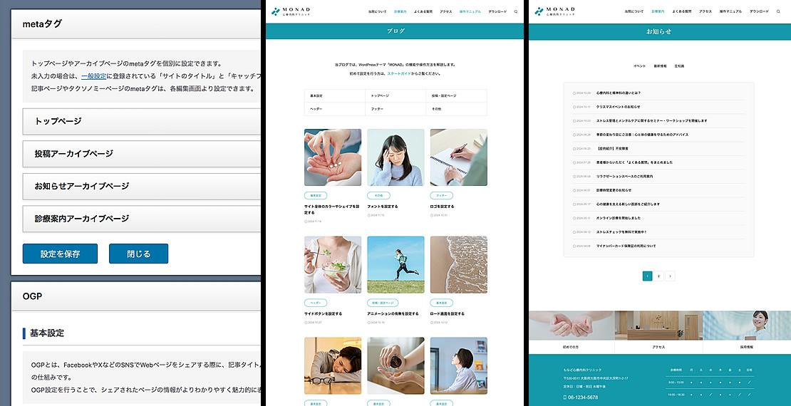医療機関のサイトに必要なページはすべて作成できるようにしました。
