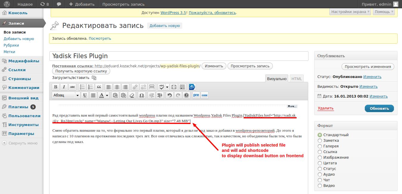 - Ability to add files from Yandex.Disk in wordpress posts/pages editor